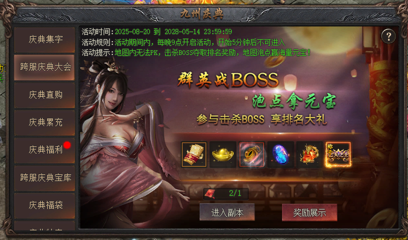 「庆典烟花大会」消耗门票,跨服世界BOSS,争夺庆福券;